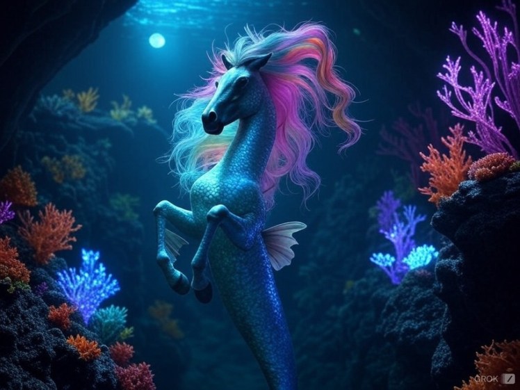 I just liked the colors on this hippocamp and the way the moonlight above highlights the face and mane.